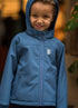 Softshellmaterialet har 3.000mm vandtæthed og er samtidig vindtæt og åndbart. Jakken er coatet med en fluorfri coating og indeholder derfor ikke skadelige fluorcarboner. Bemærk at grundet den bløde fleece på indersiden, kan man ikke tape sømmene, så jakken er ikke 100% vandtæt, da der ved tung regn kan trænge vand ind i sømmene. Jakken har aftagelig hætte for barnets sikkerhed. Jakken har bred rib ved håndleddene, så vinden holdes ude. Jakken har to lynlåslommer foran og en stor refleks bagpå.