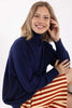 Flot højhalset sweater i mørkeblå.
