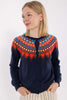 Fin navyblå cardigan med nordisk mønster til kvinder