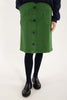 Der Rock hat einen schönen Schnitt, große Taschen und Knöpfe vorne. Der Rock wird hinten mit einem Reißverschluss geschlossen.